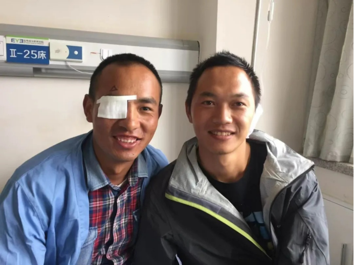 做完手术的鲁茸取扎(左)和来探望的同事合影