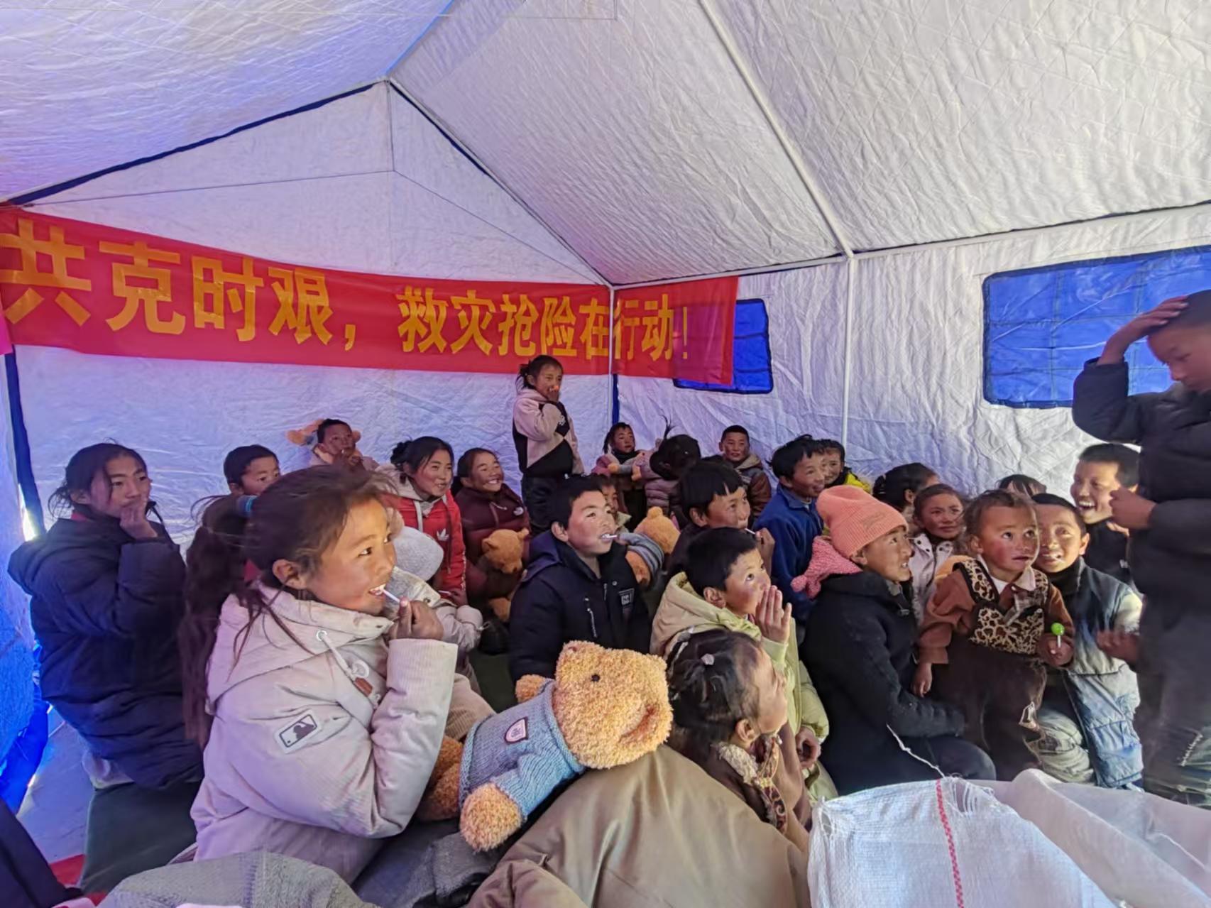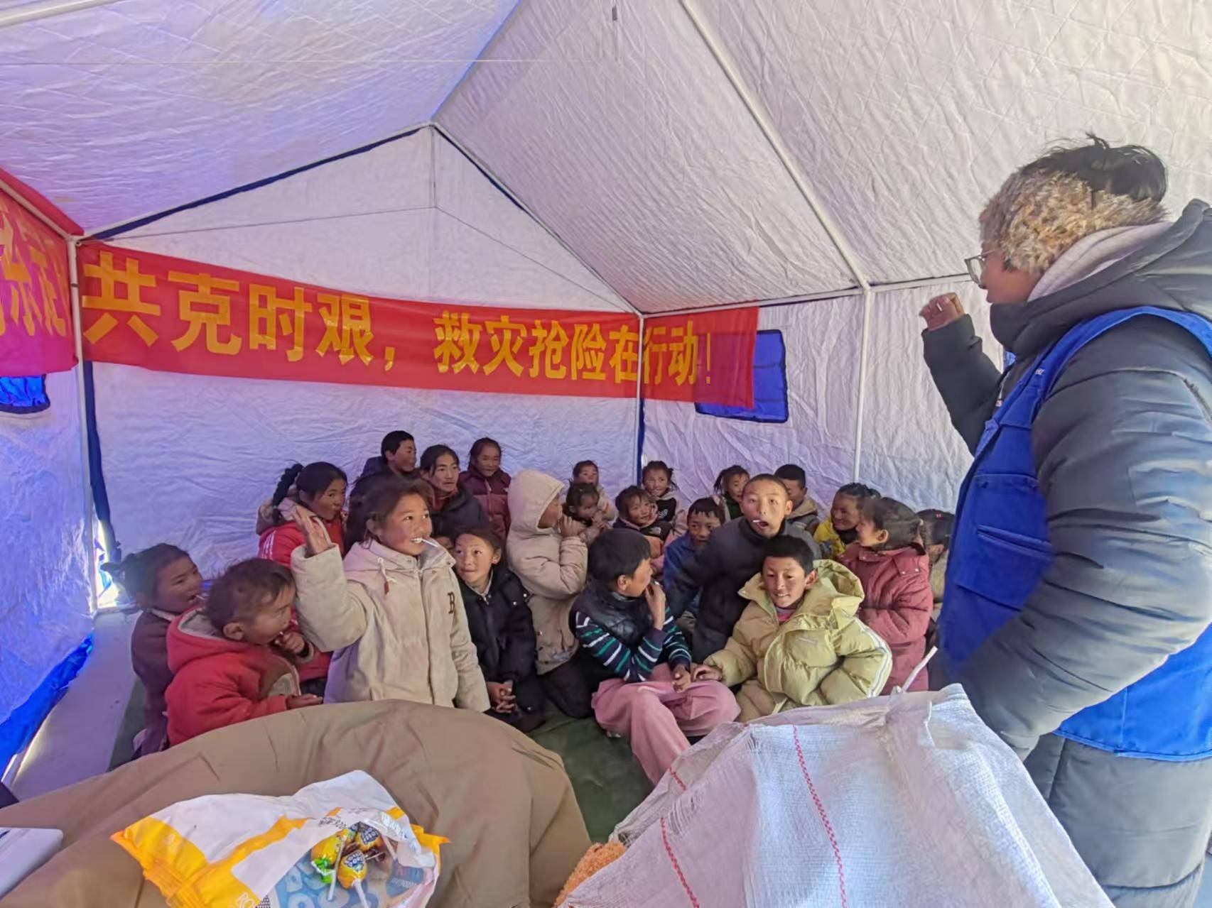 西藏星光社会工作服务中心的心理援助小组近日抵达措果乡塘仁,他们不仅携带了价值30万元的物资,还为26名受灾儿童搭建了温暖的帐篷。前往一线的工作人员为受灾儿童提供心理辅导,发放小熊玩具、开展互动游戏进行心理危机干预。