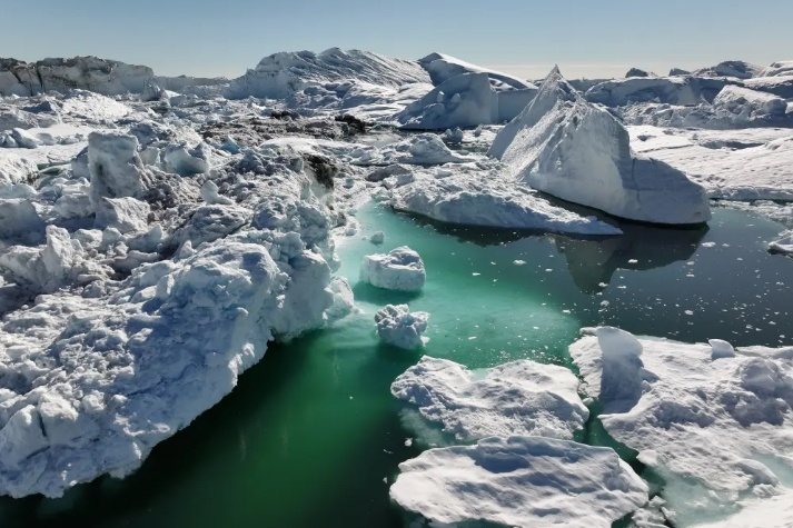 鸟瞰格陵兰岛伊卢利萨特冰峡湾融化的冰山(图源:纽约邮报)
