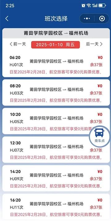 为了让同学们便捷、顺畅地抵达机场,开启温馨愉悦的假期,莆田学院主动对接福州长乐机场,推出莆田学院—福州机场的寒假免费接驳车。1月10日至14日期间,福州机场长途汽车直接从莆田学院学园校区和紫霄校区大门口出发,搭载返乡同学直达机场。