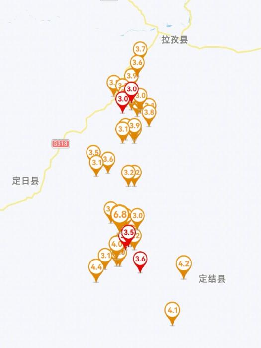 图为三级及以上余震分布,红色震中代表过去24小时内发生的地震