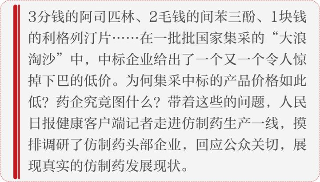 仿制药价格低,企业都亏本经营,事实真的如此吗?人民日报健康客户端记者调研走访中获得的答案是:“集采,我们还能赚钱。”