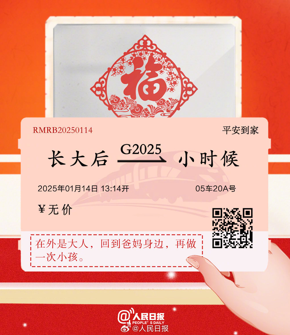 2025春运今天正式开始,今天可买除夕火车票。心之所向,是家的方向。祝福归乡的人,顺利出发,幸福抵达。