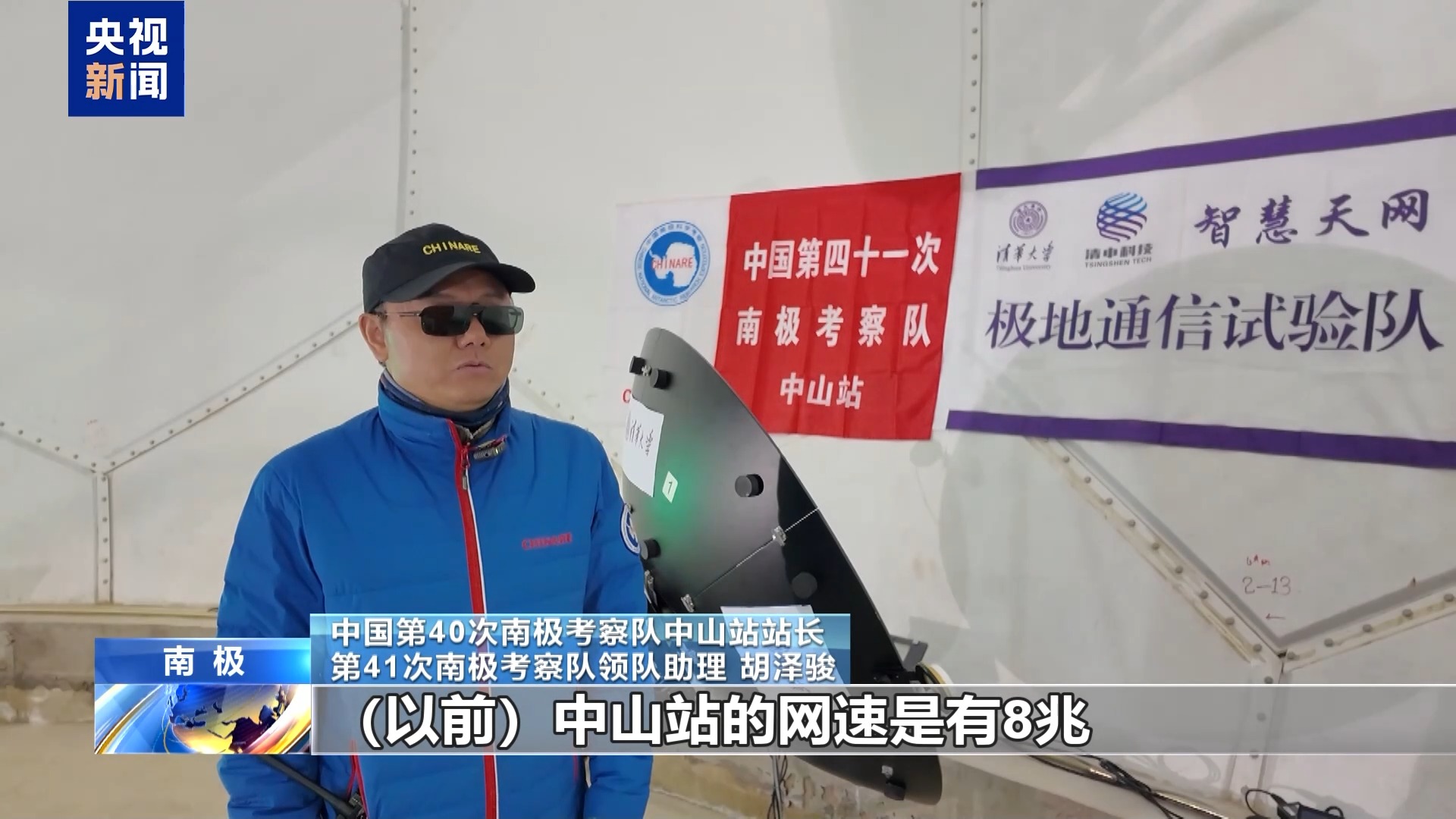 中国第40次南极考察队中山站站长 第41次南极考察队领队助理 胡泽骏:以前中山站的网速是8兆,整个站上有80到100人,网速比较拥挤。