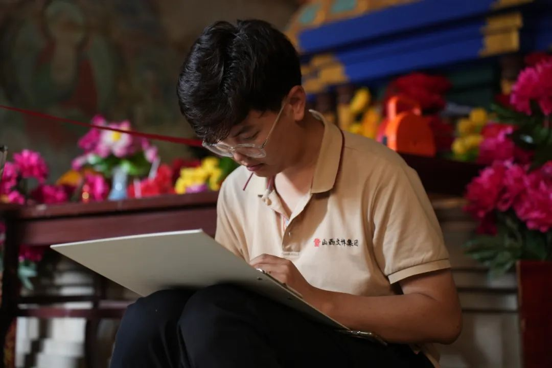高平铁佛寺中亦喜亦嗔的彩塑雕像、飞檐翘角的运城飞云楼……翻开任泓憬随身携带的速写本,不少文物被他细致的笔触“定格”。任泓憬自幼学习美术,每一处壁画彩塑,在他眼里都是艺术品。“每到一地,我总会被文物之美所震撼,所以我就用绘画将文物‘留’下来,这也是属于我自己的文物采集。”任泓憬说。