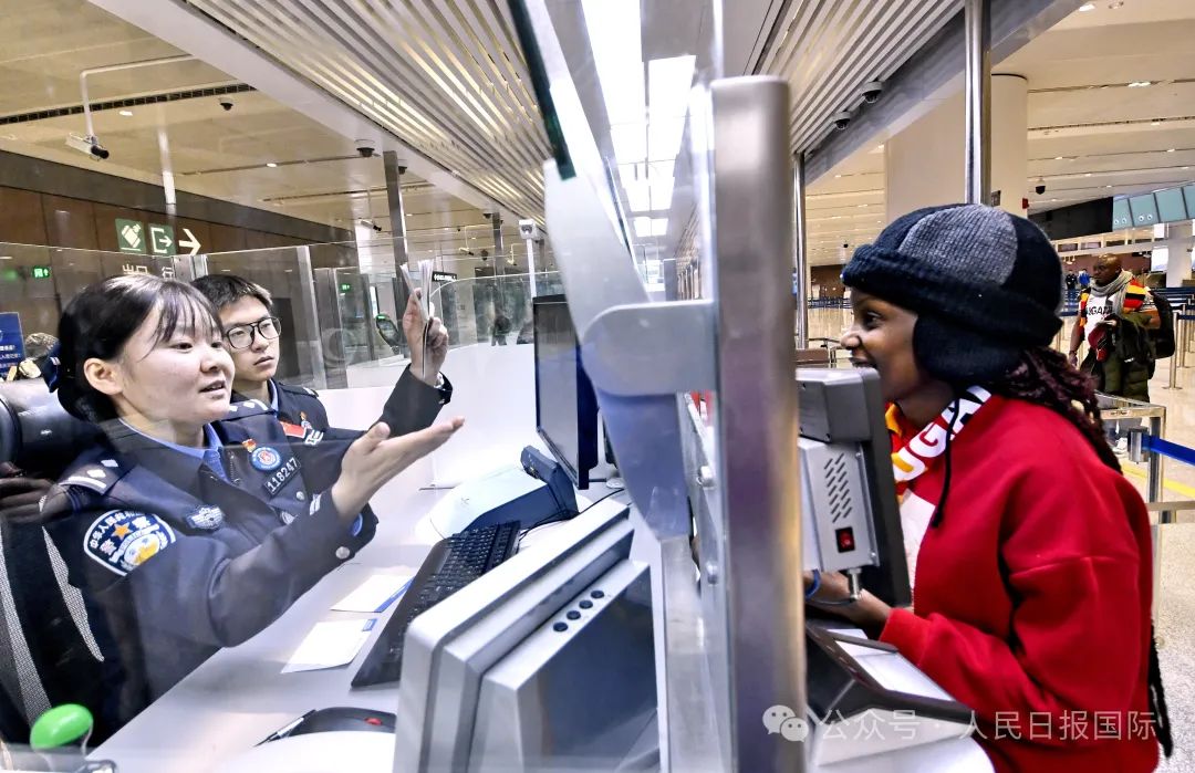 2024年12月27日,外国游客从北京大兴机场边检站入境。新华社记者鞠焕宗摄