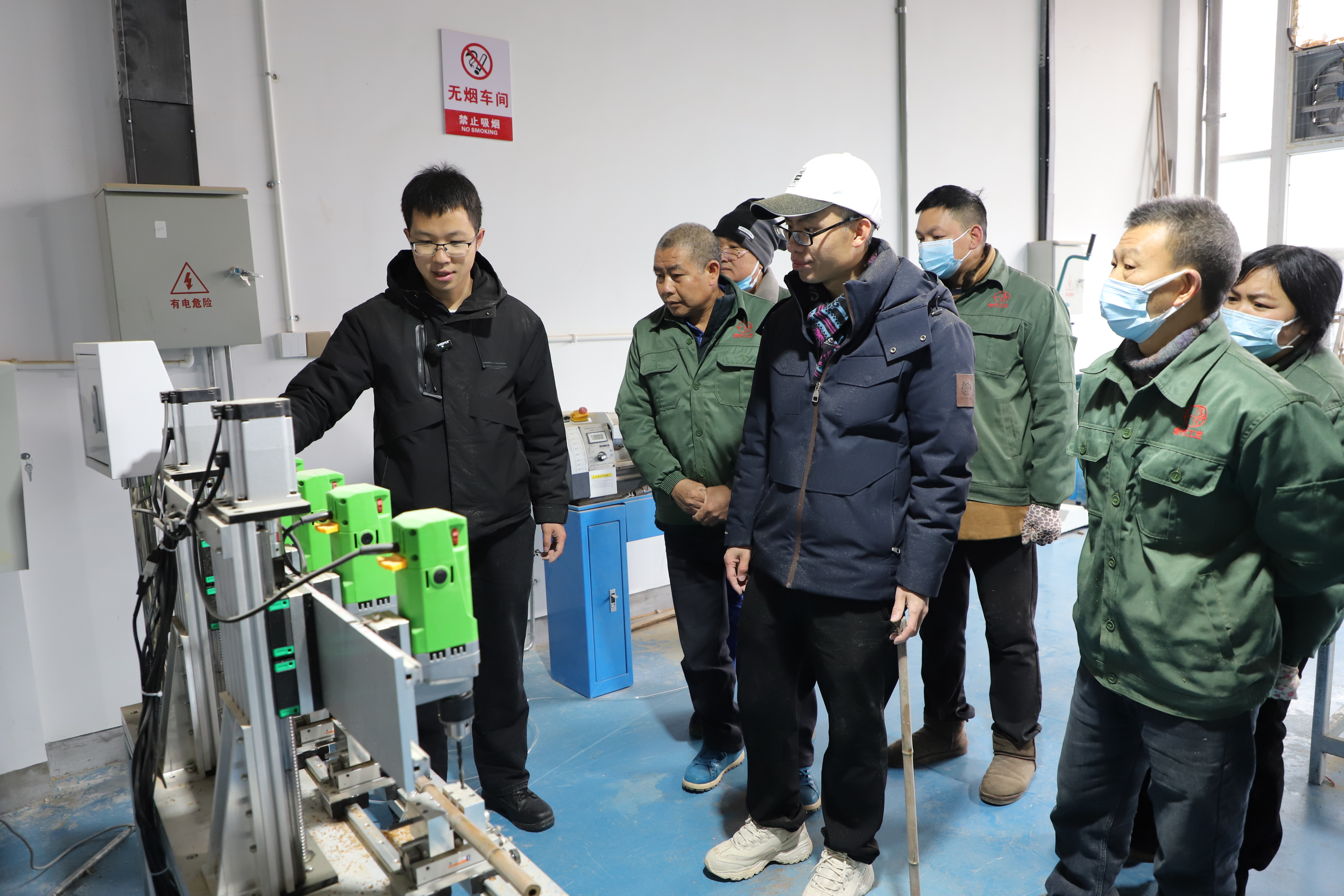 “把急停开关顺时针旋转打开,先按自动,再按启动就可以了。”在筇竹竹材加工车间,西南林业大学机械与交通学院硕士研究生张联健向工人们细心讲解、示范新设备的使用和注意事项,促使大家能够迅速掌握操作要点,上手操作。