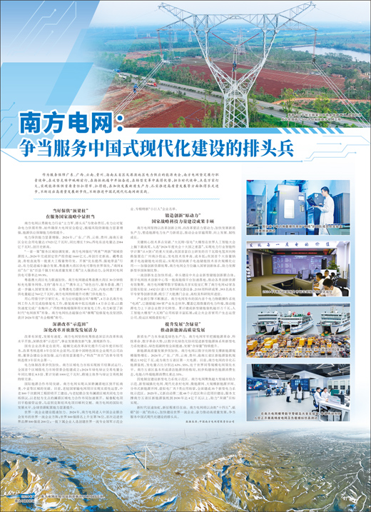 关键核心技术多点突破。“大瓦特·驭电”大模型在世界人工智能大会上摘下最高奖,入选“2024年度央企十大国之重器”,实现电力行业智能科学计算“从0到1”的重大突破;我国首套自主研发的百千瓦级电氢双向转换装置在广州南沙投运,发电技术效率高、成本低;我国首个大容量钠离子电池储能电站投运,实现我国钠离子电池储能技术首次规模化应用……加强创新资源统筹,南方电网全方位融入国家创新体系,助力发挥新型举国体制优势。