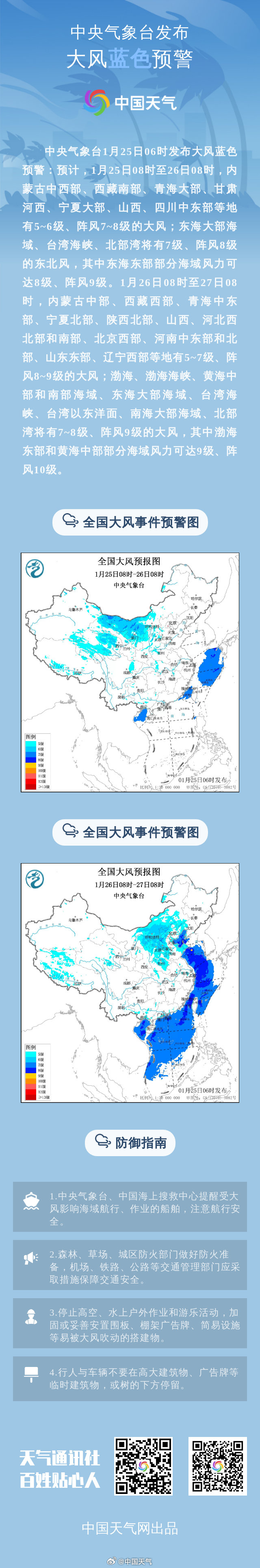 大风→25日至26日,内蒙古、西藏、青海、甘肃、宁夏、山西、四川等地有5~6级、阵风7~8级的大风。