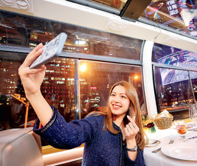 游客在北京朝阳美食观光巴士上享受休闲时光。 |