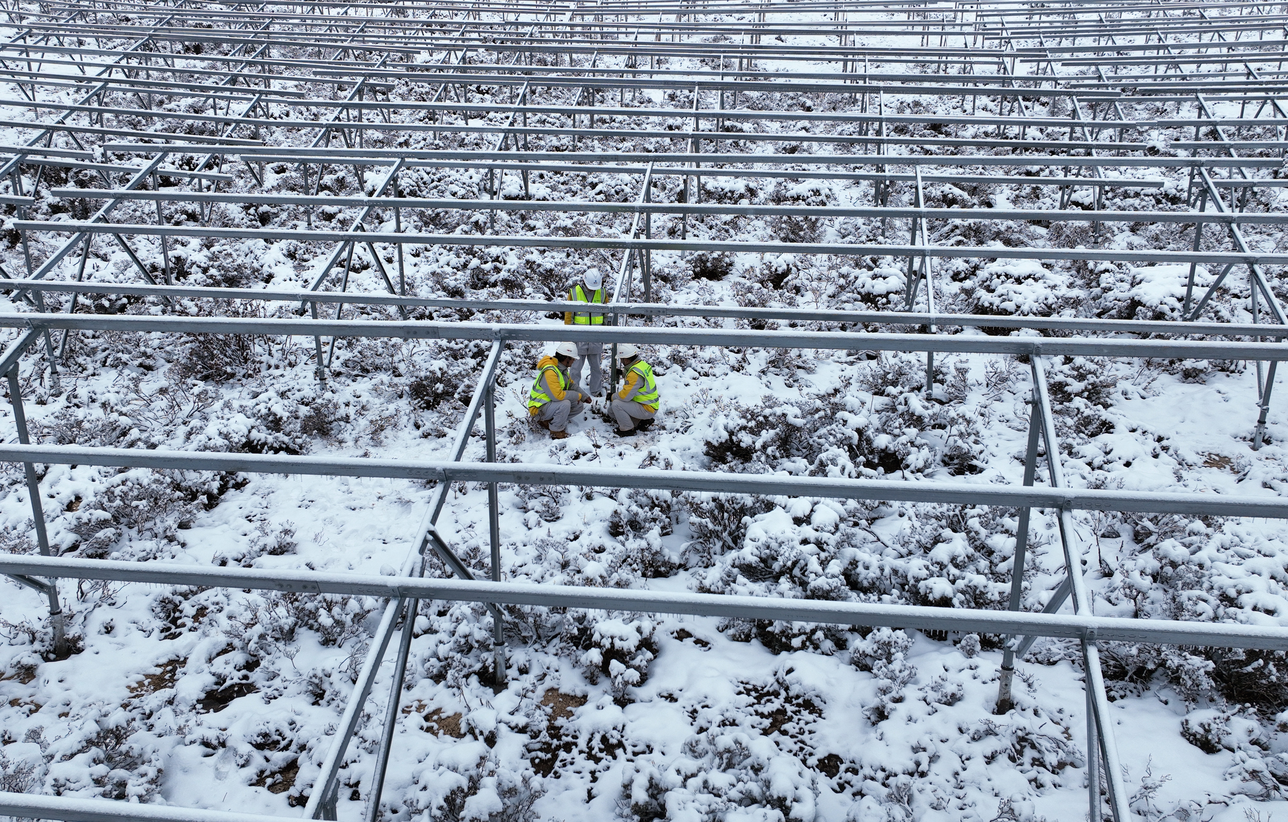 雅砻江扎拉山光伏电站建设者在冬雪中施工
