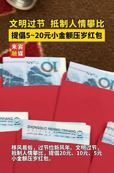 来宾市精神文明建设办公室提倡20元、10元、5元小金额压岁红包