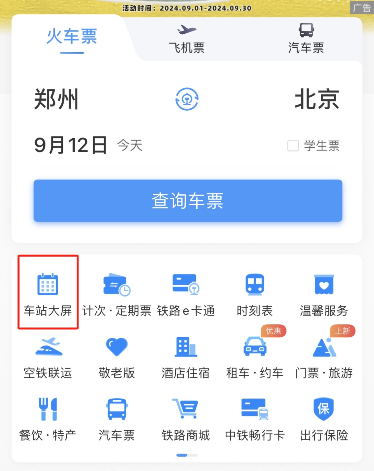 那么怎么方便便捷地查看检票口呢?首先打开铁路12306APP,在手机客户端首页点击“车站大屏”。