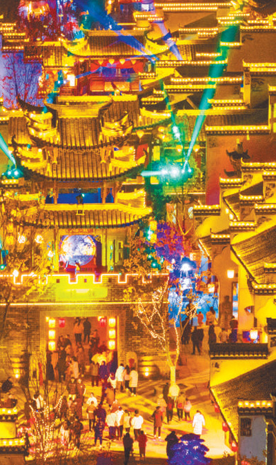 湖北孝感市云梦县祥云湾景区灯火通明、游人如织。 |