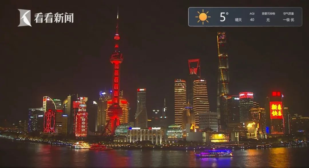 今年起,除夕被正式纳入法定节假日,春节假期延长至8天,昨夜上海全市景观照明就已开启重大活动模式,浦江两岸流光溢彩,营造浓厚的节日气氛。