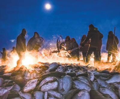 在本次旅游节上,游客不仅可以一睹“冰湖腾鱼”,还可以感受到鱼皮画、冰灯雪雕等多场文化“盛宴”。