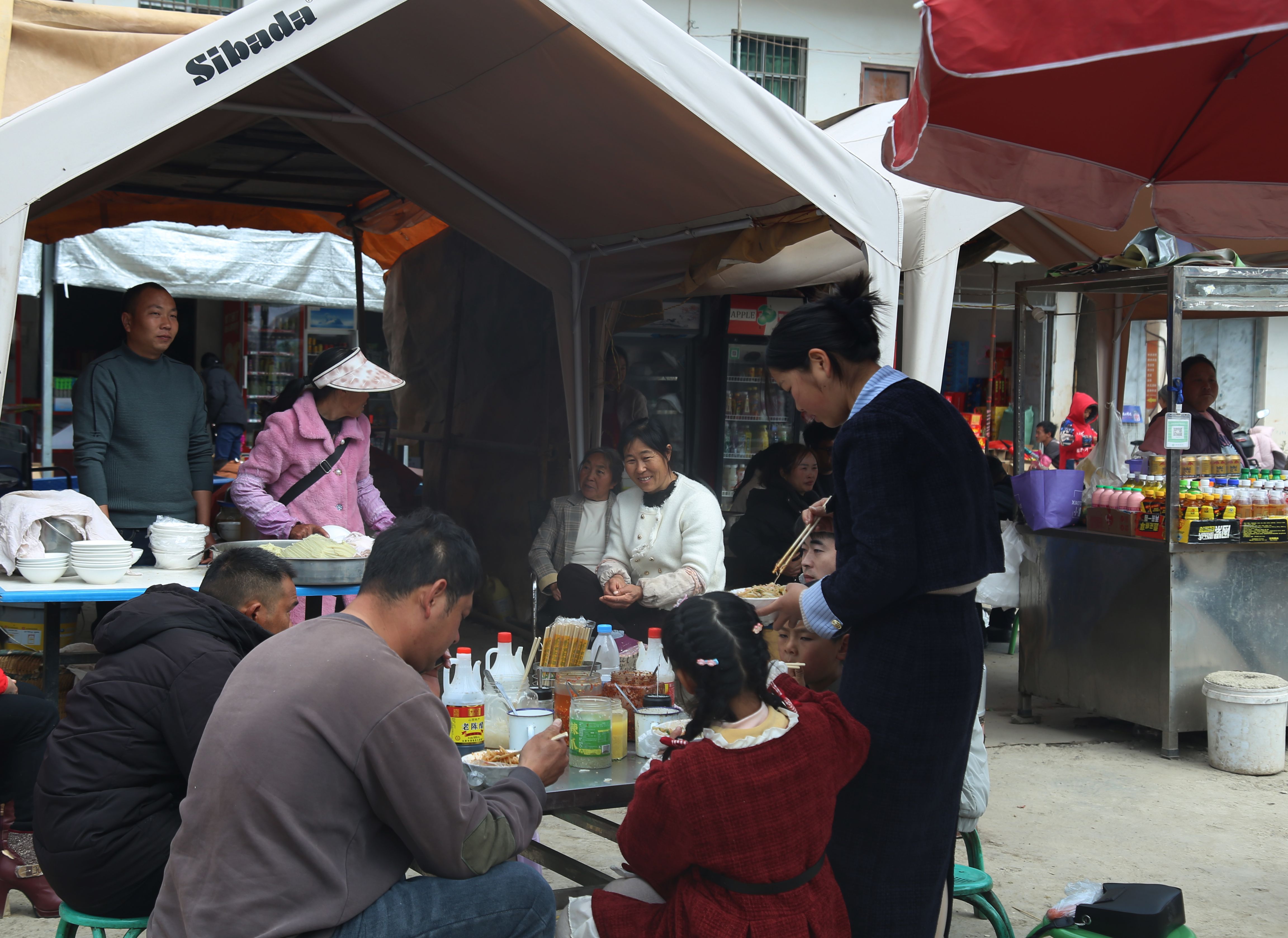 1月30日上午,步入云南巧家县大寨镇海口社区,这里是通往白鹤滩水电站的必经之路。一入社区,热闹的氛围扑面而来,街道上车水马龙,来往车辆川流不息。加油站旁的休息区游客们兴致勃勃,惬意地品尝着当地特色小吃,或挑选着琳琅满目的农特产品,整个社区洋溢着蓬勃的生机。