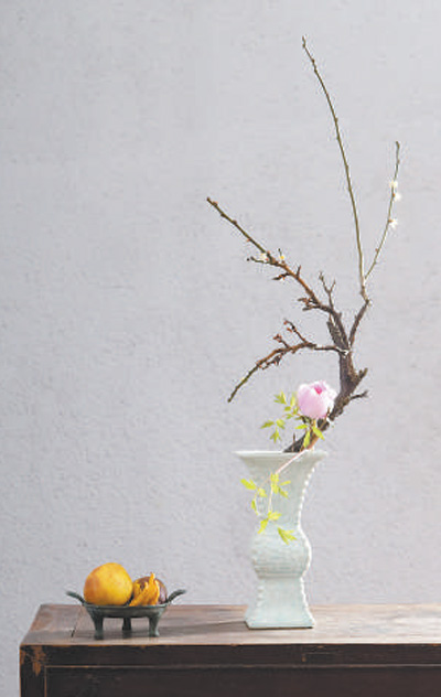 不管是选择南方的梅花山茶,还是选择温室技术烘开的桃花玉兰,瓶花的插制皆要以有画意为审美标准,高高低低,疏疏密密,要让所选择的花材凑在一处,仿佛是从瓶子中生长出来的一般。一瓶之内,诸般花材凑簇相生,各具意态,虽有人造,宛若天成,这才是中国瓶花的独特魅力所在。