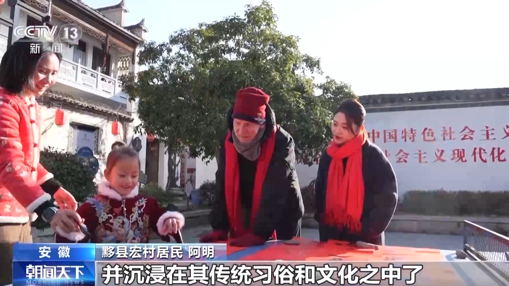 黟县宏村居民 阿明:我来自奥地利,作为一名外国人,我一直渴望了解中国文化。对我而言,没有比这里更好的地方,能让我体验到中国春节的真正内涵,并沉浸在其传统习俗和文化之中了。