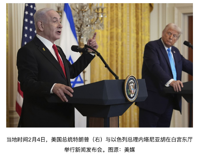 当地时间2月4日,美国总统特朗普与以色列总理内塔尼亚胡会面。特朗普在随后的新闻发布会上表示,希望美国接管加沙地带。特朗普还称,不排除向加沙地带派遣美军。他在回答记者提问时说:“就加沙而言,我们将采取一切必要措施。如果有必要,我们就会这么做。”