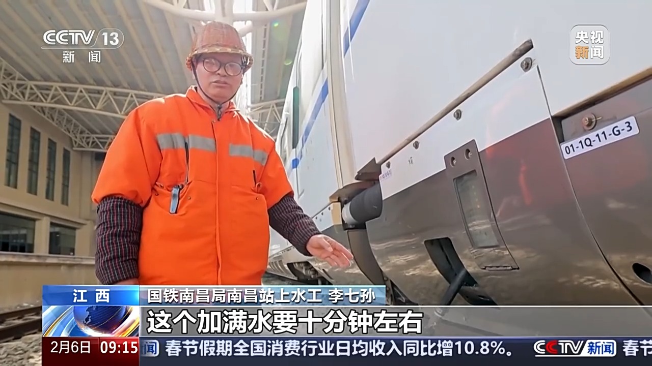 列车如果缺水,列车长就会向调度汇报需要加水的车厢号。列车会在经停5分钟以上的车站加水,上水工也会迅速查找缺水的车厢,最快可以在3分钟内迅速给车厢加水。