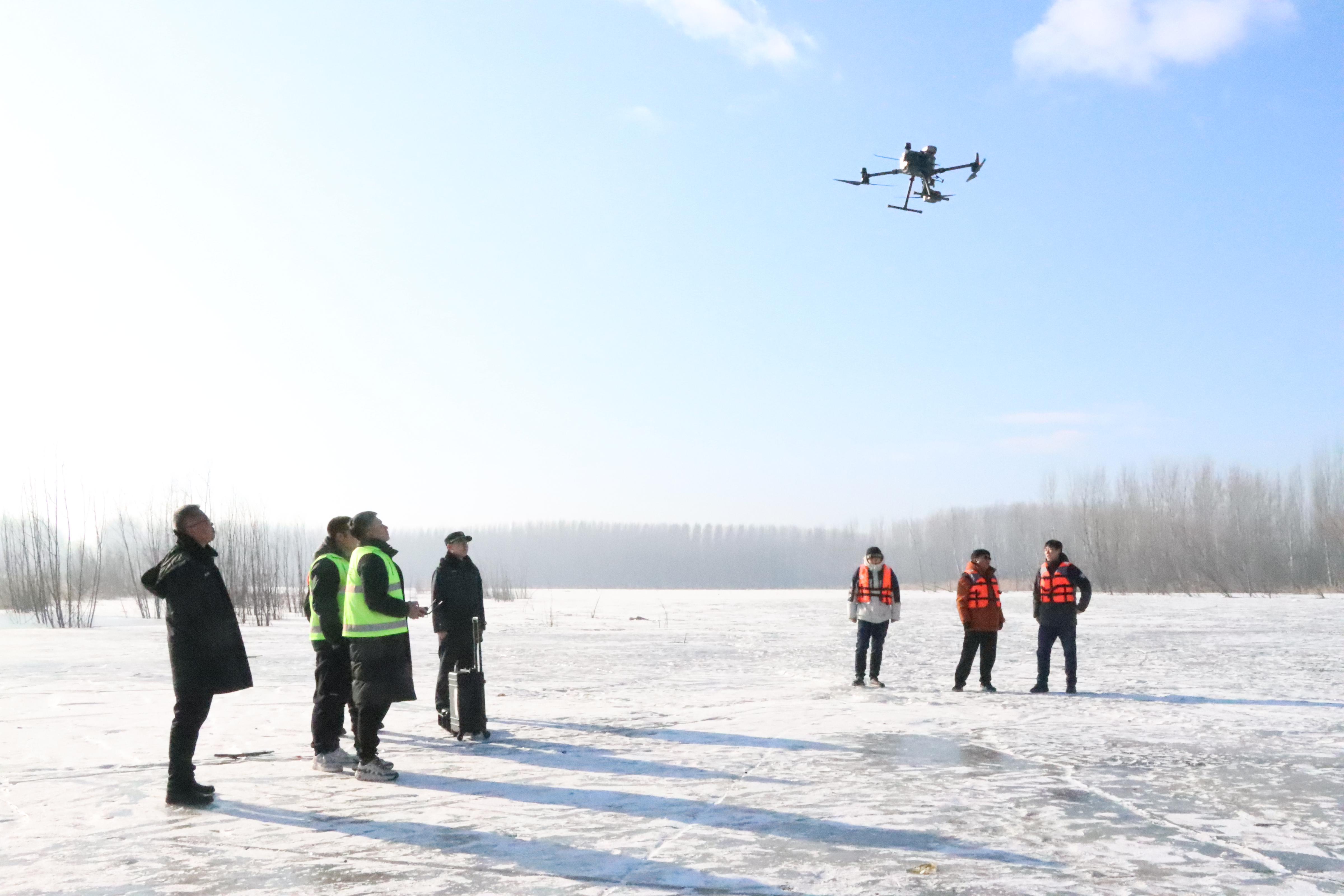 为了全面保护渔业水域资源和群众生命财产安全,1月26日和2月2日,北京八达岭低空科技发展有限公司的无人机团队配合延庆区农业农村局,在延庆水产服务中心附近的河面开展了渔政巡查行动。在两次行动中,无人机团队协同延庆区农业农村局综合执法大队,开展了一场特殊的冰面及河面执法行动。无人机不仅具备高清拍照和录像功能,还能通过喊话器向违法垂钓者发出即时提醒,一旦发现冰面裂缝、薄冰区域或安全隐患,立即向相关部门报告,为预防安全事故提供了有力的技术支持。据统计,无人机共飞行16架次,发现违法垂钓25处,均已通过喊话器成功驱离,有效遏制了冰面及河面违法垂钓行为的发生。