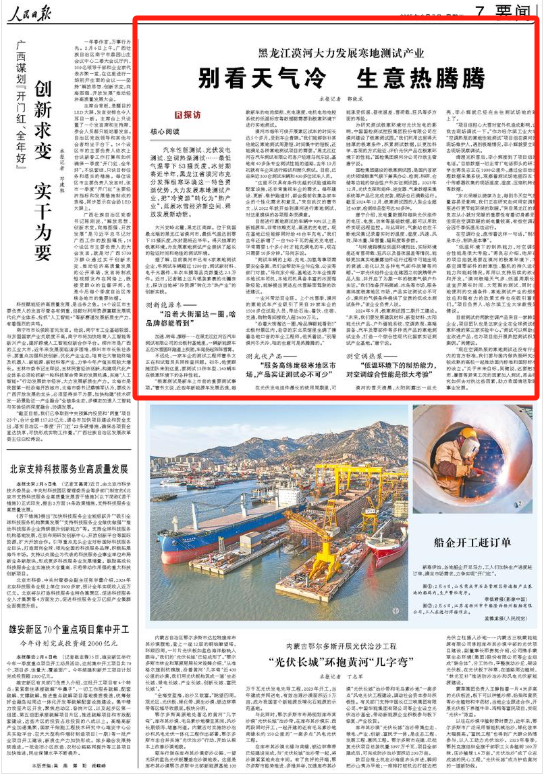 汽车性能测试、光伏发电测试、空调热泵测试……最低气温零下53摄氏度,冰封期将近半年,黑龙江省漠河市充分发挥极寒环境这一特色资源优势,大力发展寒地测试产业,把“冷资源”转化为“热产业”,延展冰雪经济新空间、释放发展新动能。
