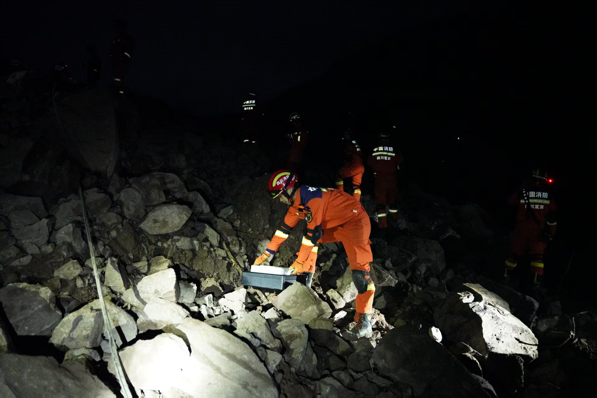 争分夺秒!四川筠连山体滑坡 消防救援人员正在全力搜救