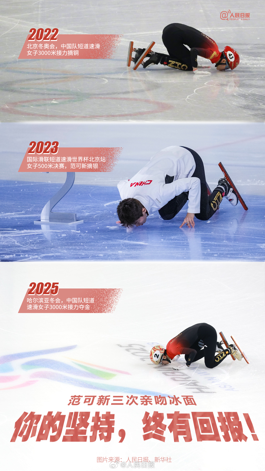 从2022年北京冬奥会,到2023年国际滑联短道速滑世界杯,再到2025年哈尔滨亚冬会,范可新三次赛后亲吻冰面,不变的是热爱和坚守。你的坚持,终有回报。这就是最好的范可新!