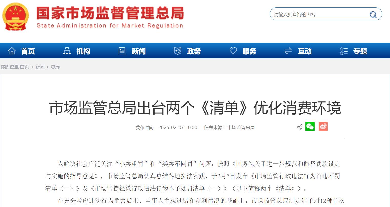 未取得食品经营许可从事散装食品经营活动,危害后果轻微并及时改正的违法行为,可“首违不罚”;经营超保质期的食品,违法行为轻微并及时改正,且没有造成危害后果的违法行为,可“轻微免罚”。近日,国家市场监管总局出台清单,对12种首次违法和轻微违法行为不予处罚,受到广泛好评。