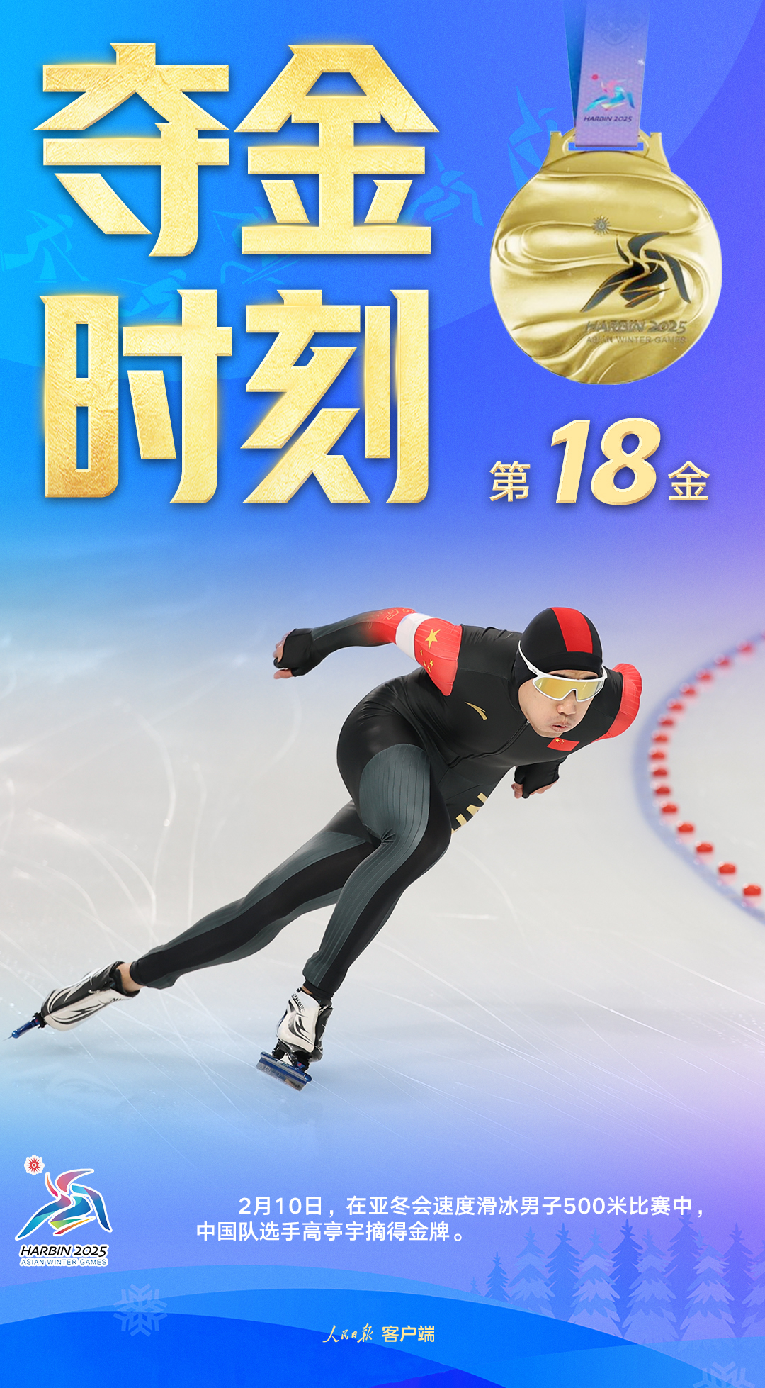 10日,亚冬会速度滑冰男子500米比赛中,中国队选手高亭宇以34秒95的成绩摘得金牌,为中国体育代表团再添一金。