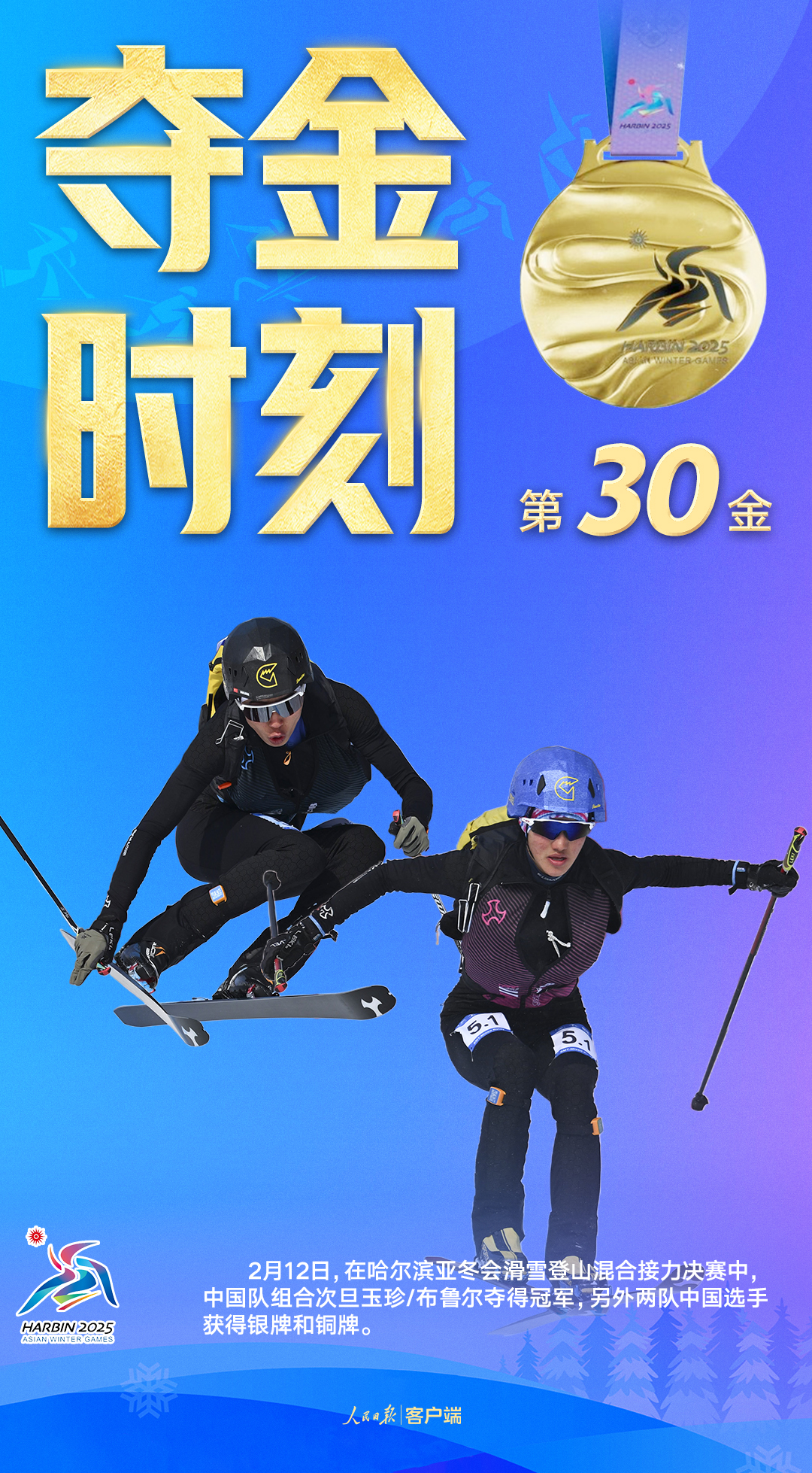 中国队包揽亚冬会滑雪登山混合接力金银铜牌