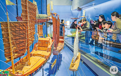图②:游客在博物馆内感受运河魅力。孟德龙摄(影像中国)