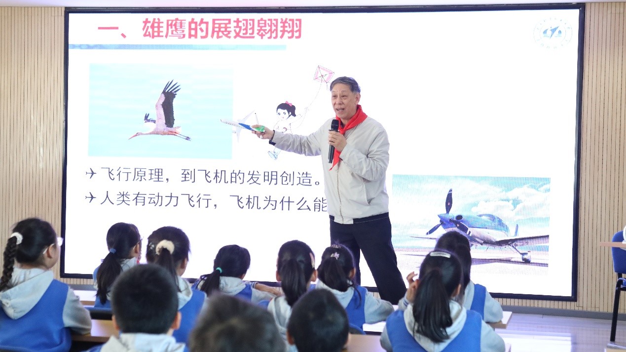 在北京教育科学研究院丰台实验小学,国际宇航科学院院士、北京理工大学邓玉林院士在《去浩瀚太空、解生命之谜》讲座中,为学生们揭示了太空与生命的奥秘。中国青少年科技教育工作者协会航空航天专委会主任、北京航空航天大学航空科学与工程学院院长潘翀教授在北京第五实验学校的《从师法自然到超越自然:科技如何创造飞行》讲座中,从独特的角度阐述科技与飞行的关系。教育部关工委“五老”报告团首批专家、北京航空航天大学航空发动机研究院陈志英教授在北京市丰台区第五小学的《脚踏风火轮去飞翔》讲座中,以生动有趣的方式讲解相关航空知识。