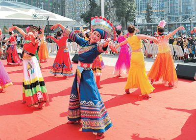 贵阳花果园兰花广场,演员在文化惠民活动上演出。 |