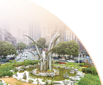 2002年,以兰花为设计主题的大南门环岛建成。环岛中心的兰花雕塑由中国美术家协会设计创作,用不锈钢材料制成,采用传统的双钩法表现纤细的叶、雅致的花,通过巧妙的棱角转折、虚实对比等展现兰花简洁流畅的形态特征,在街心花园花草树木的衬托下更显灵动,与周边的南明河、甲秀楼以及环岛附近的高楼相得益彰。