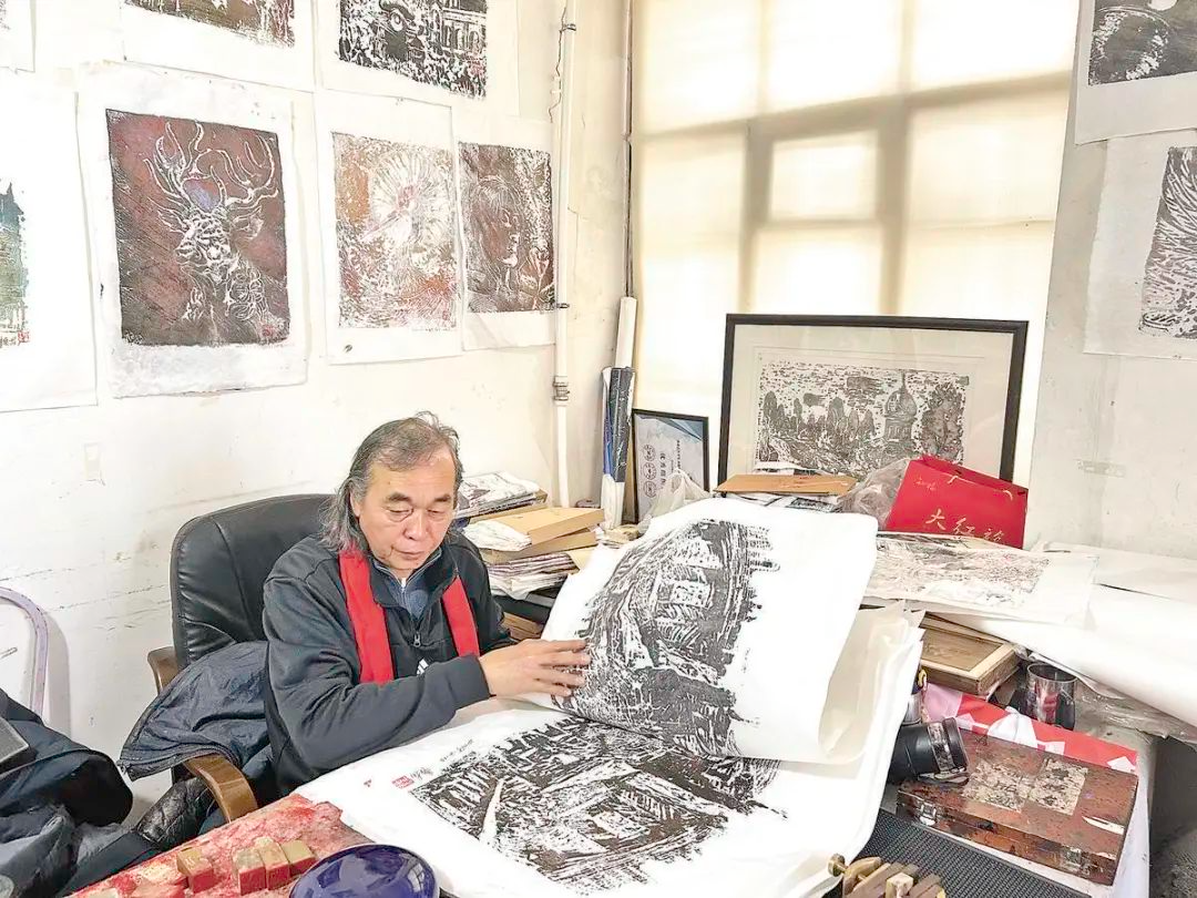 此后20余年,他自制30多种雕刻工具,调试数百种颜料配方,摸索出“室外低温防洇墨”“防冻液固色”等技法……