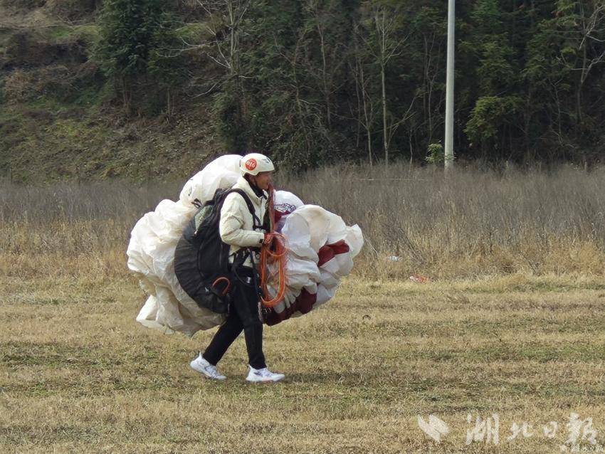 如今湖北黄石、荆门、宜昌、咸宁等地,均有滑翔伞飞行体验基地。在黄石大冶毛铺,最多时每年千名体验者“放飞”滑翔,最小体验者仅有3岁,最大体验者年龄超过60岁。