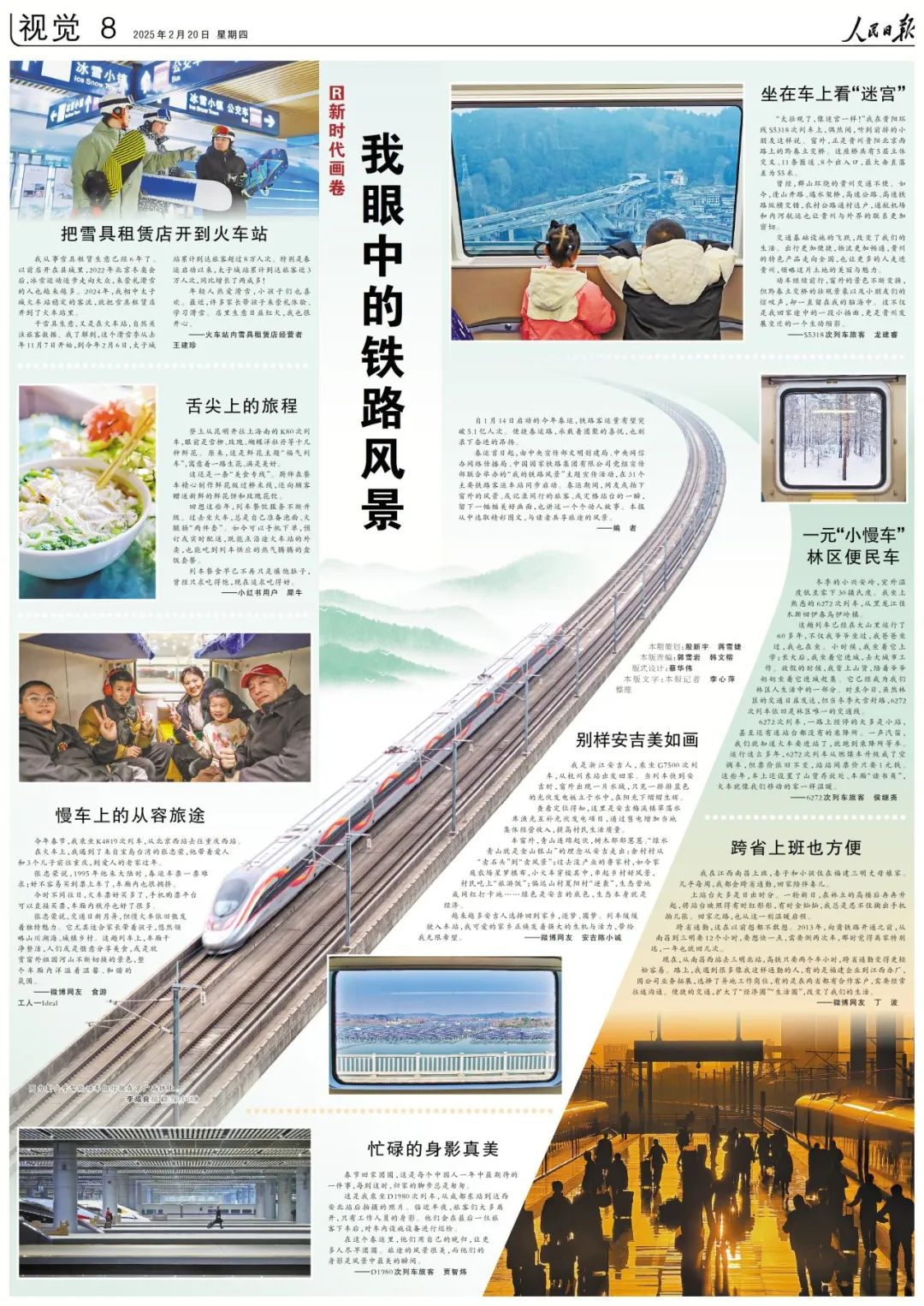 春运首日起,由中央宣传部文明创建局、中央网信办网络传播局、中国国家铁路集团有限公司党组宣传部联合举办的“我的铁路风景”主题宣传活动,在31个主要铁路客运车站同步启动。春运期间,网友或拍下窗外的风景、或记录同行的旅客、或定格站台的一瞬,留下一幅幅美好画面,也讲述一个个动人故事。人民日报从中选取精彩图文,与读者共享旅途的风景。