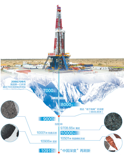 回望来路,20世纪70年代,我国第一口井深超过7000米的钻井完钻。从7000米到突破8000米,历经29年;从8000米到迈入9000米,历经15年;从9000米到冲破10000米大关,仅用3年。