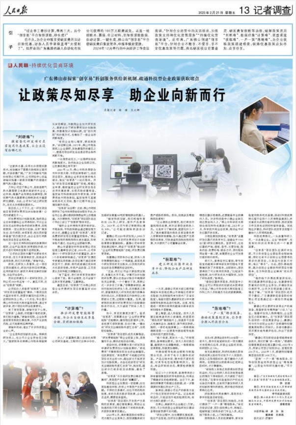 “每次线下开展政策宣讲活动,我们既邀请科技型企业,也邀请有投资意向的创投企业参加,并增设自由交流环节,让双方在现场建立联系、增进了解。”“创享易”项目团队成员邓子豪说,广东豪德数控装备股份有限公司正是通过这一路径引来金融活水。