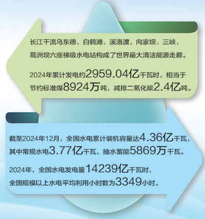 浩荡长江,乌东德、白鹤滩、溪洛渡、向家坝、三峡和葛洲坝6座梯级电站,构筑成世界最大清洁能源走廊,上演“一滴水发6次电”的奇观。九曲黄河,龙羊峡、刘家峡、小浪底等骨干水库“携手”防洪水、调泥沙、保供水。从云贵高原奔泻而下的红水河,自高到低建有天生桥、龙滩、大藤峡等梯级水电站,滚滚河水生绿电。