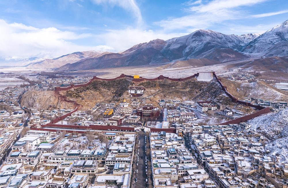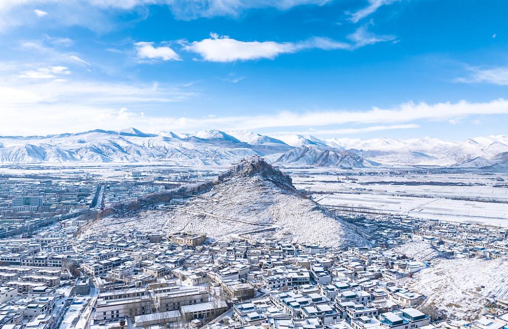 2025年2月19日,西藏日喀则,江孜县迎来降雪,皑皑白雪覆盖江孜县城。(视觉中国)