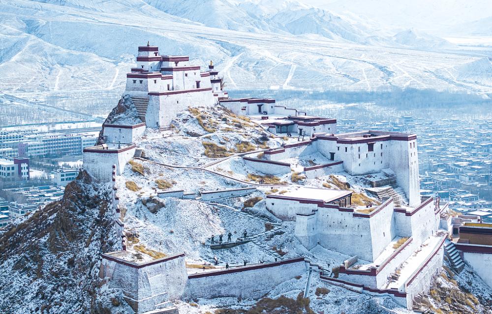 2025年2月19日,西藏日喀则,江孜县迎来降雪天气,皑皑白雪覆盖宏伟建筑。(视觉中国)