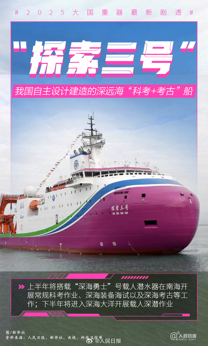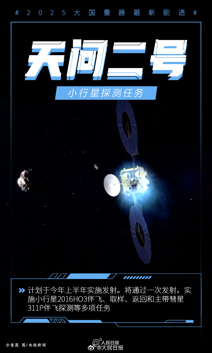 天问二号计划今年上半年实施发射;“梦想”号大洋钻探船将开展它的首次科考任务;今年将推动CR450动车组试验考核;中国空间站将迎来三艘飞船……越星河、探深海,创新永不停歇,中国永不止步。2025大国重器最新剧透↓↓一起期待,也致敬所有付出!
