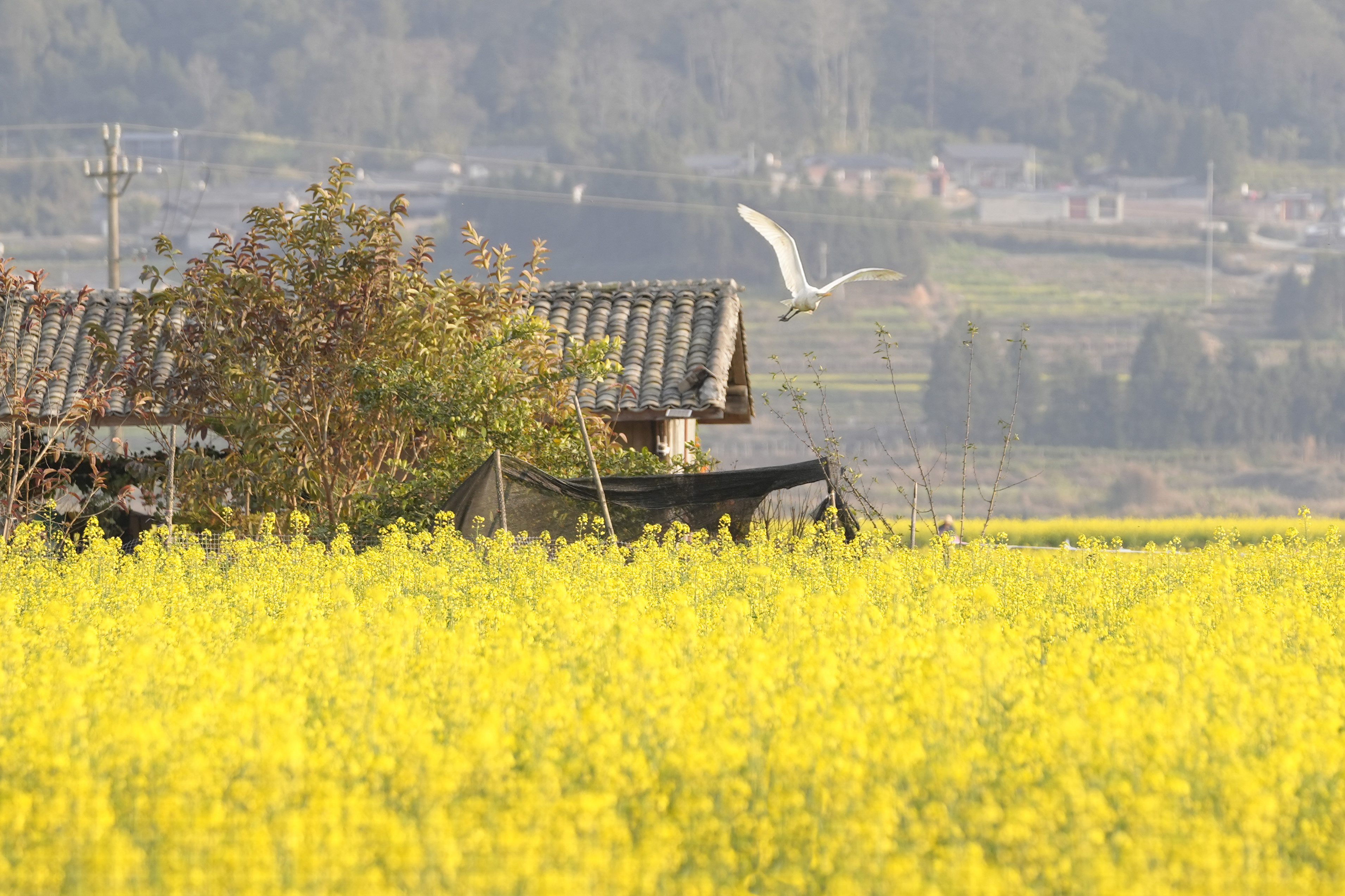 15600亩油菜花海如油画般铺展,白鹭翩跹掠过夕阳,阿昌族村寨的炊烟与花香交织……这个春日,翩翩白鹭邀你共赴户撒来一场“鎏金春宴”。