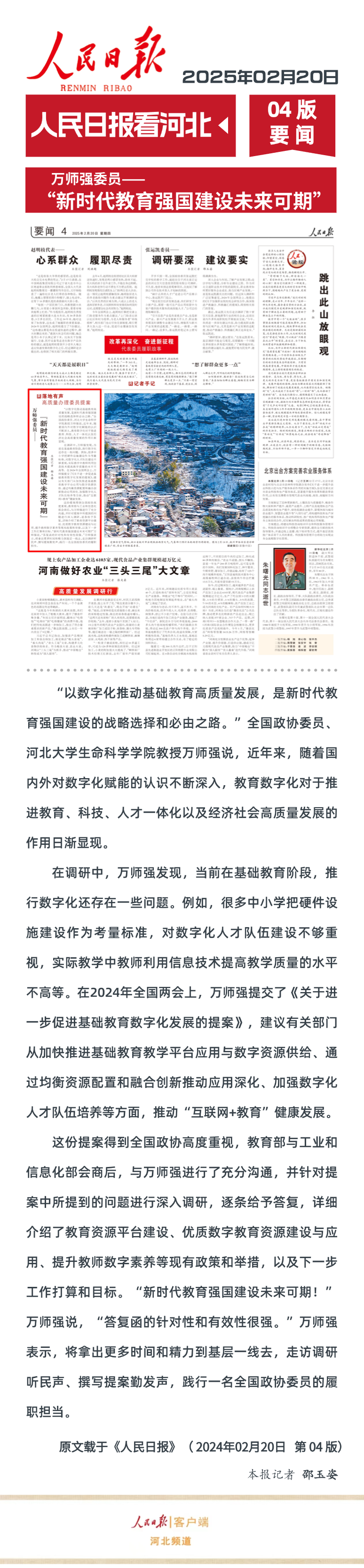 人民日报看河北 | 万师强委员:“新时代教育强国建设未来可期”
