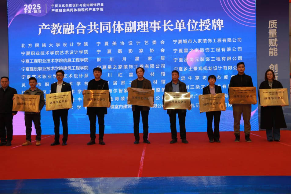 政府、高校、行业协会、龙头企业相关领导共同启动“宁夏文化创意设计与室内装饰行业产教融合共同体”。