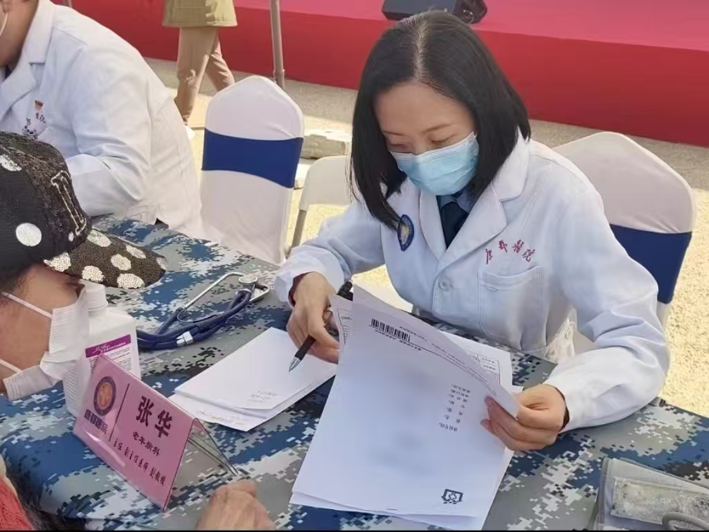 “您的血压有点偏高,平时吃饭要少油少盐。”在义诊现场,老年医学科张华叮嘱患者。