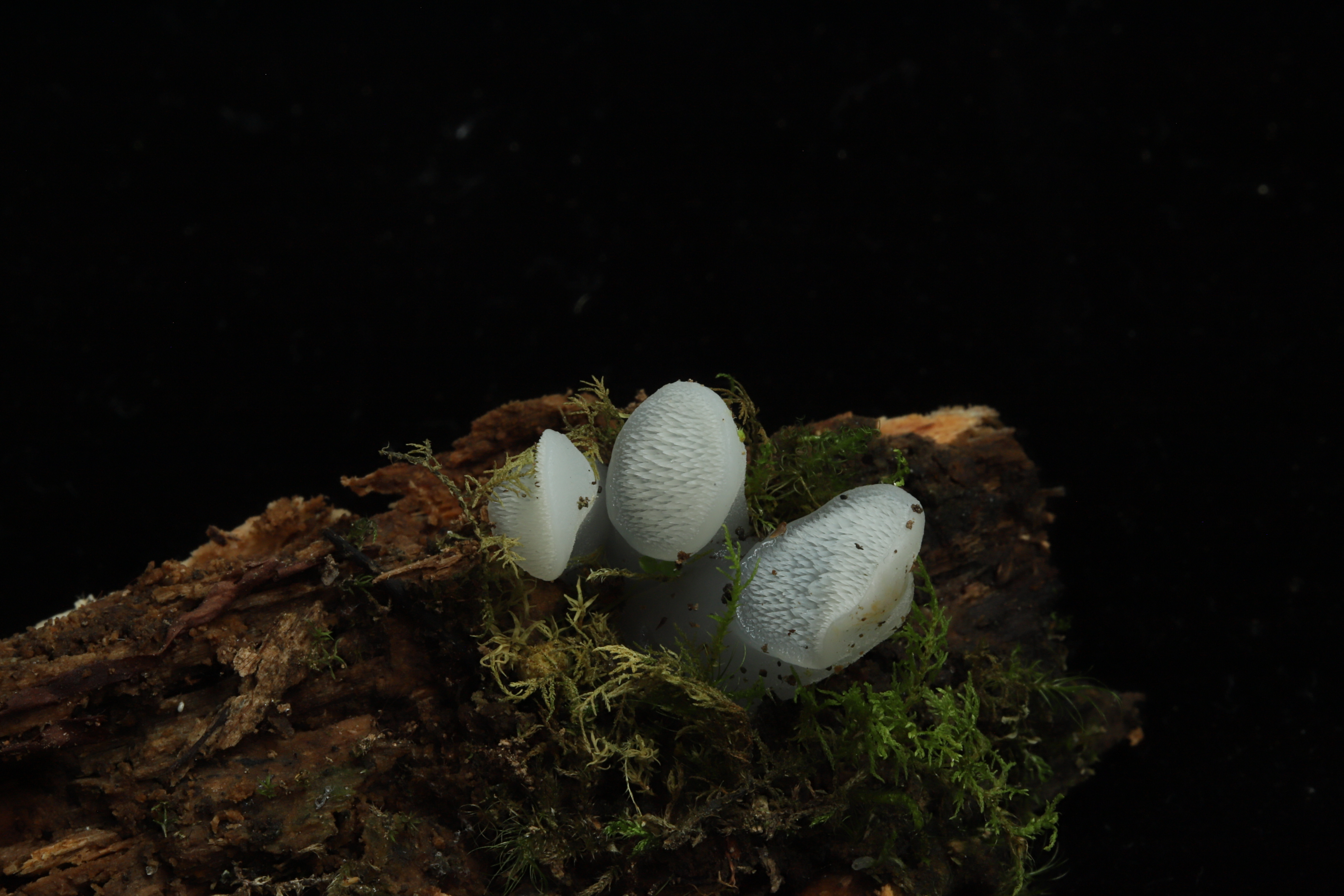 洁白刺银耳的模式标本采自海拔2933米的西藏日喀则定结县,分布在松属、红豆杉属和杜鹃花属为主的针阔混交林的腐木上。它的子实体小巧,菌盖似吸盘状,洁白色,菌柄扁平呈圆柱形。